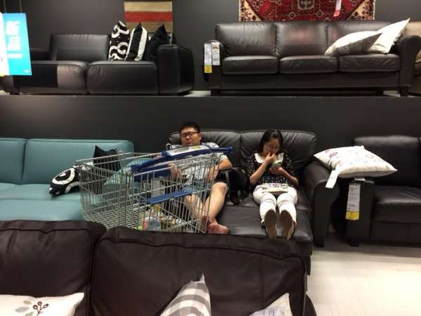 原标题:酷暑难耐 看宁波宜家众人销魂睡姿