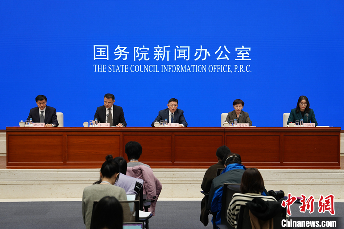 11月24日,中国国务院新闻办公室在北京举行新闻发布会,商务部副部长兼国际贸易谈判副代表凌激,北京市人民政府副市长司马红,商务部外国投资管理司司长朱冰,北京市商务局党组成员、中国(北京)自由贸易试验区(国家服务业扩大开放综合示范区)工作领导小组办公室专职副主任刘梅英介绍深化国家服务业扩大开放综合示范区建设有关情况,并答记者问。 中新社记者 崔楠 摄