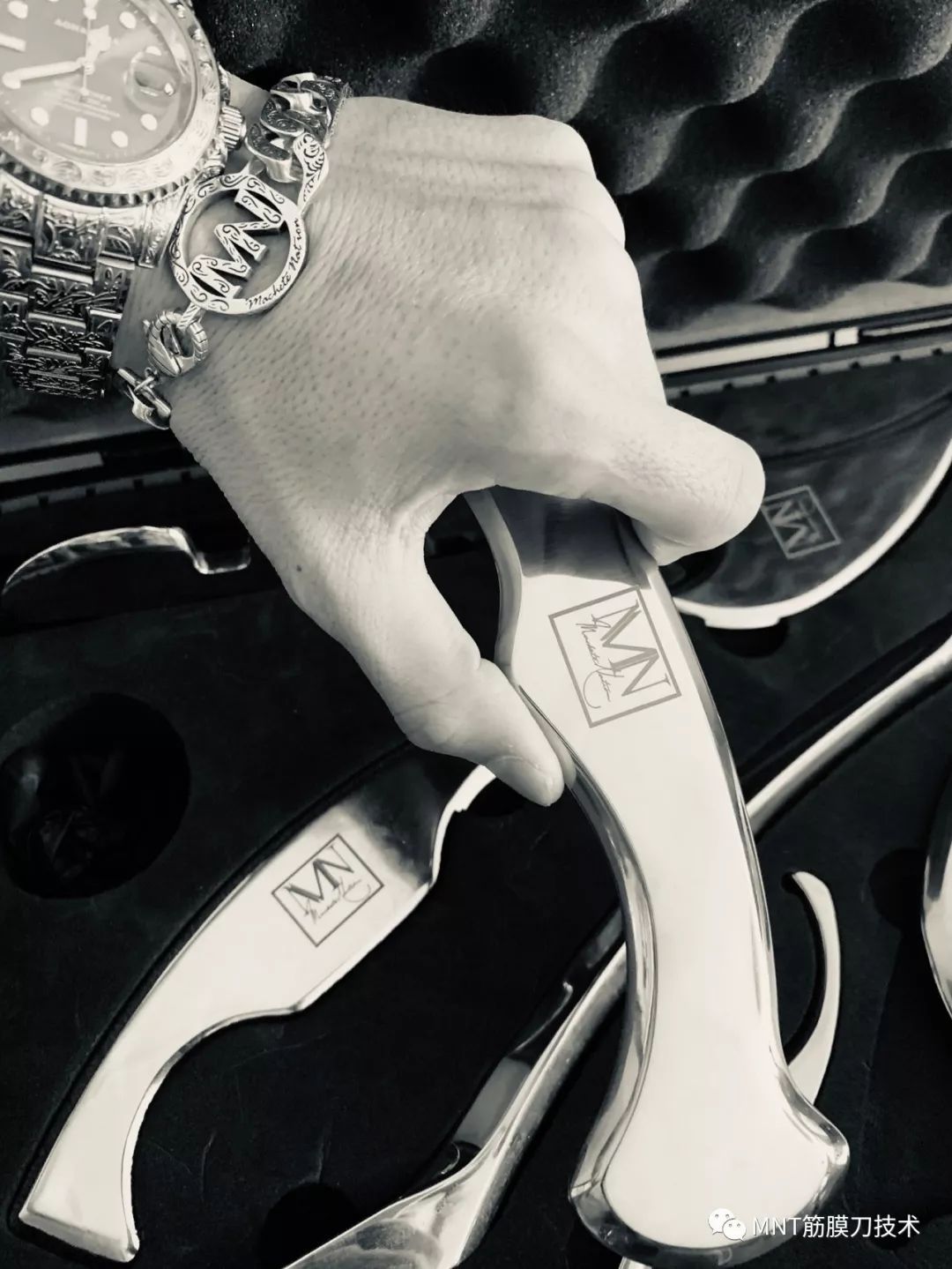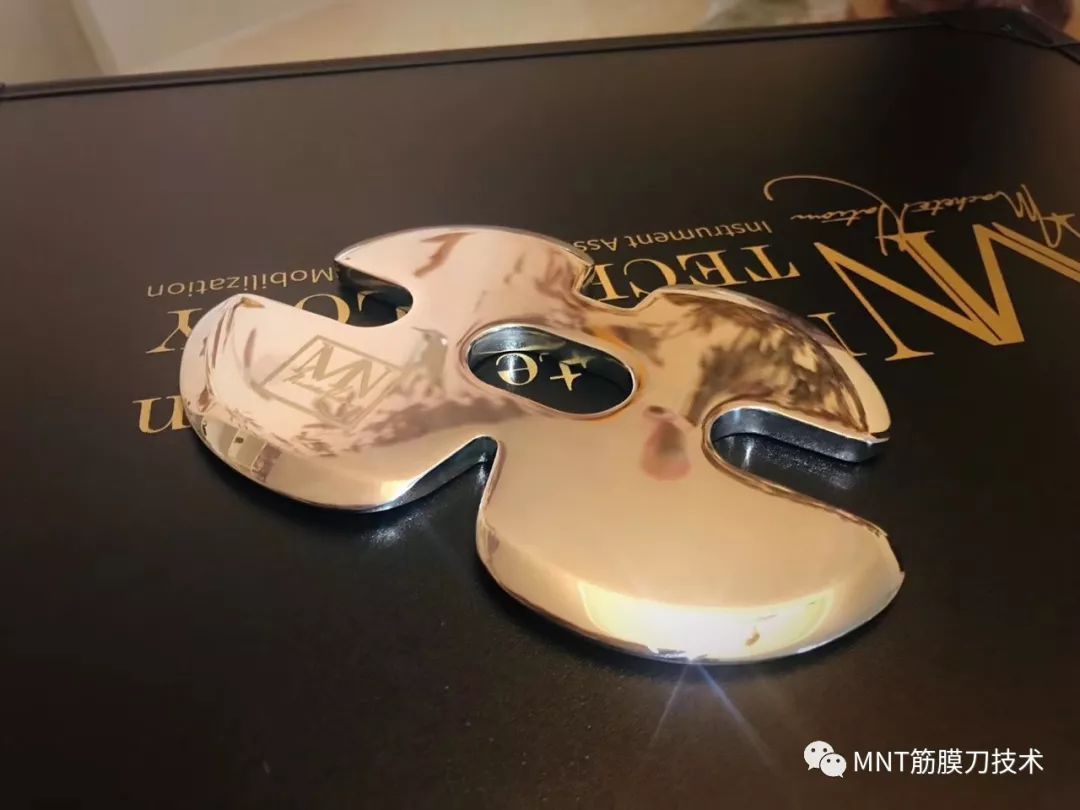 MNT筋膜刀虽然名为“刀”其实并非真的刀,而是采用医疗级不锈钢,并采用激光切割及纯手工打磨而成的,看似锋利其实刃口圆润的软组织松解工具,每把刀具都有着特殊的角度,厚度以及重量。