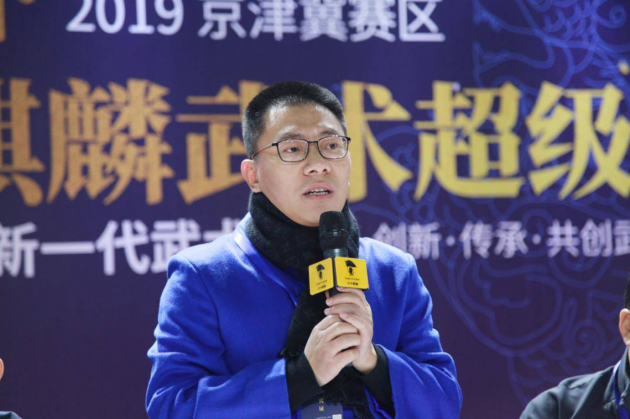 主办方京津冀体育发展协同创新中心吴昊秘书长介绍了京津冀体育发展协同创新中心是由首都体育学院牵头,北京、天津、河北三地教委、体育局、体育学院等单位共同组建,探索与建立京津冀健身休闲人才培养与健身休闲发展协同创新的机制与模式。“功夫麒麟武术比赛,以麒麟作为武术的图腾,很有象征意义,希望本次比赛能为大家打开一扇探索武术世界的大门,希望更多的人学习武术,把武术作为终身的健康生活方式。”