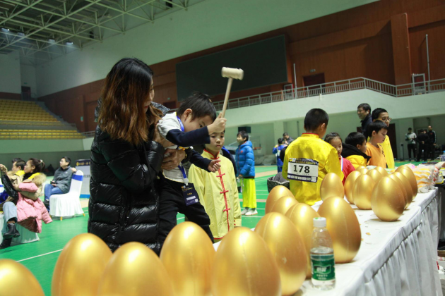 冠军以砸金蛋方式抽取奖品