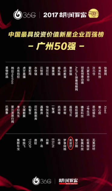 工业设计服务平台“来设计”于10月13日参加《2017胡润百富中国最具投资价值新星企业百强榜广州50强》评选,作为最具投资价值的工业设计服务项目。当下,“共享经济”正成为撬动经济社会发展潜力的新力量,“来设计”作为广州本土互联网企业,有望在新的一轮“共享经济”扩张浪潮中成为一家有标杆意义的创业公司。