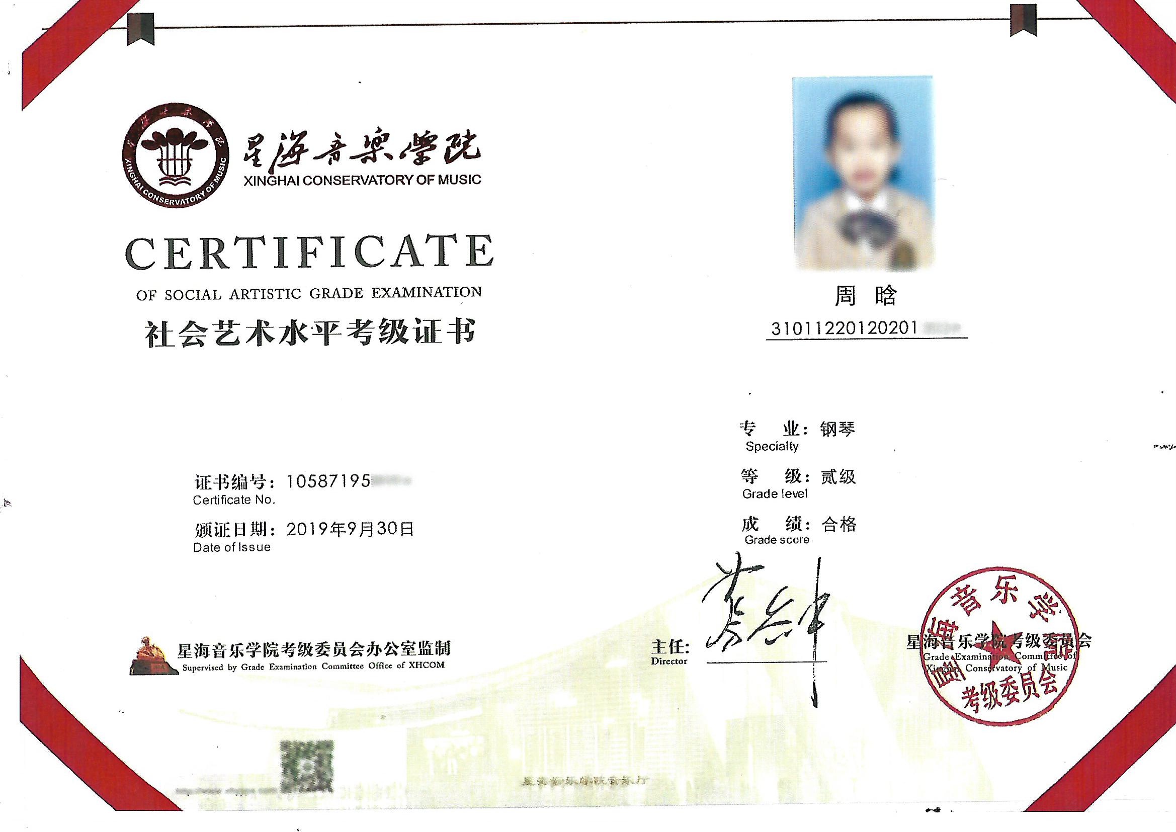 考级后,30个工作日(不含寒暑假),由星海音乐学院考级委员会颁发证书。