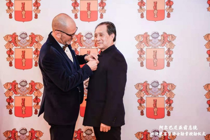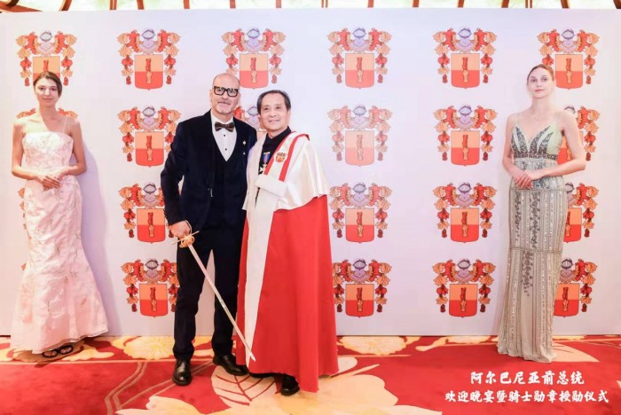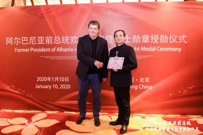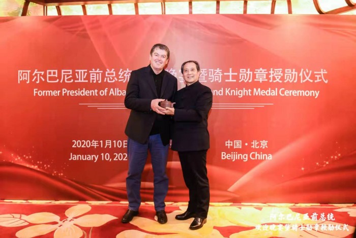2020年1月10日,阿尔巴尼亚前总欢迎晚宴暨骑士勋章授勋仪式在奥林匹克森林公园玲珑塔四层隆重举行阿尔巴尼亚前总统巴米尔·托皮、博思科亲王Pietro Bosco出席。