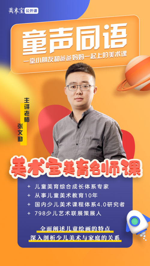 作为美术宝教育教学总监,美术宝1对1师资团队负责人,张文勤对于儿童的综合成长体系认知有着深度理解和思考,本次美育名师公开课,他带着自己独特的美育洞察,为屏幕前的家庭,全面阐述了儿童绘画的特点,以及对少儿美术与家庭的关系进行了深入剖析。