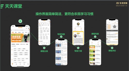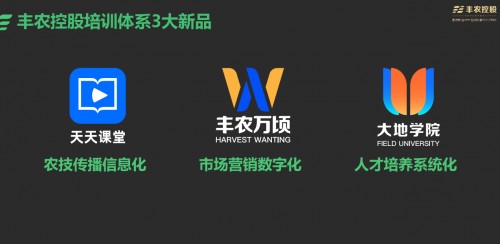 以解决农民农技水平不高,农技学习渠道少,农技学习成本高等难题为核心,丰农控股创立了国内首个农民职业教育服务平台——天天学农。目前天天学农已合作1500多位农业专家,制作了50000多节课程。去年,天天学农成功入驻学习强国平台,并与中国农大、西北农林、华东农大、华东华南农大等等的高校达成合作。今年,天天学农又推出了三款数字化教育新品。