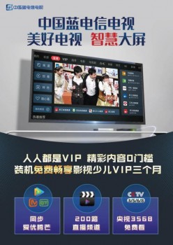 中国蓝电信电视,全力打造内容互动传播平台,全心锻造大屏家庭视频娱乐服务、智慧家庭电信业务流量核心入口。