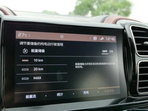 这款车型有四种驾驶模式,分别是混动、电动、运动以及四驱。在大部分用车场景中混动模式是最常用的,它可以智能控制前后电机与引擎的工作状态。如果使用电动模式的话,靠纯电可行驶58km/h。运动模式时加速最快,且引擎的反应速度与变速箱也会更积极一些。至于四驱模式则是,后电机会持续工作,而引擎和前电机会不时介入。