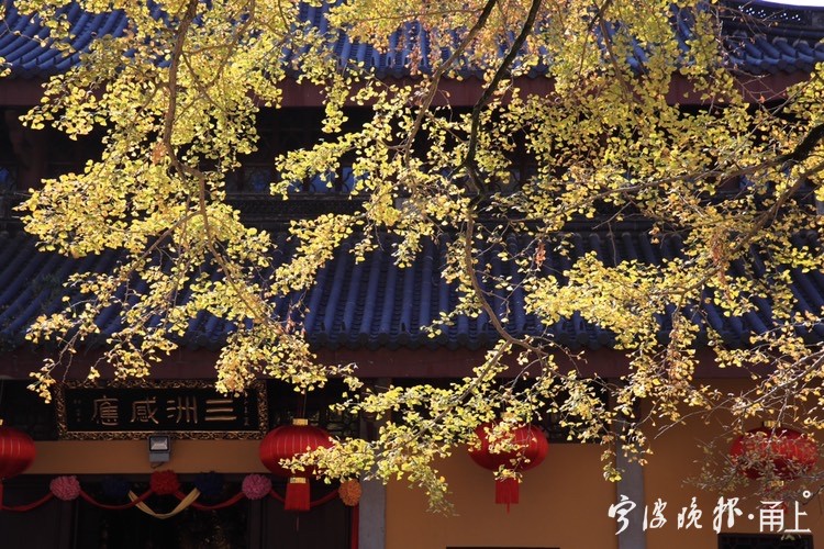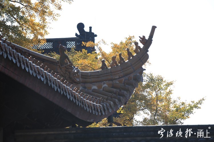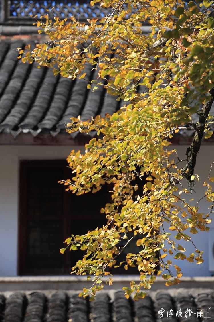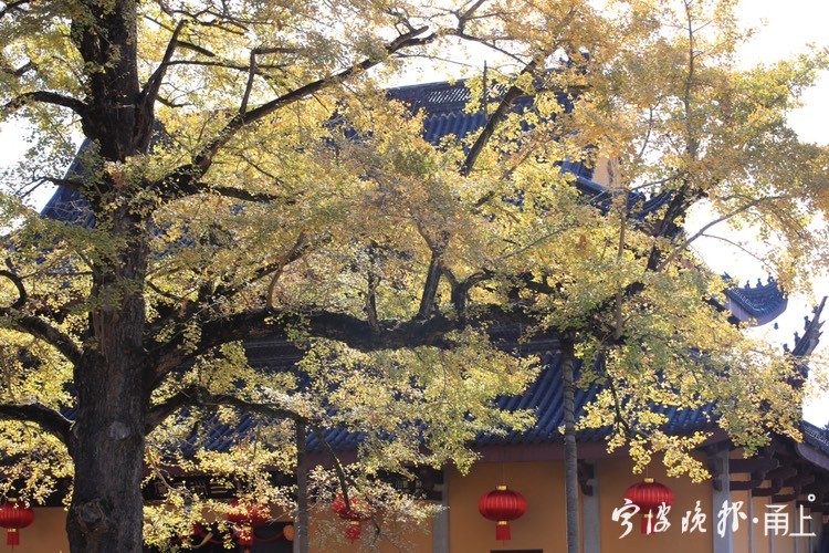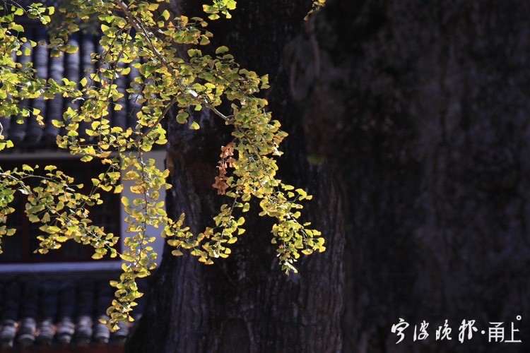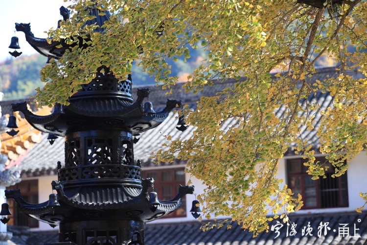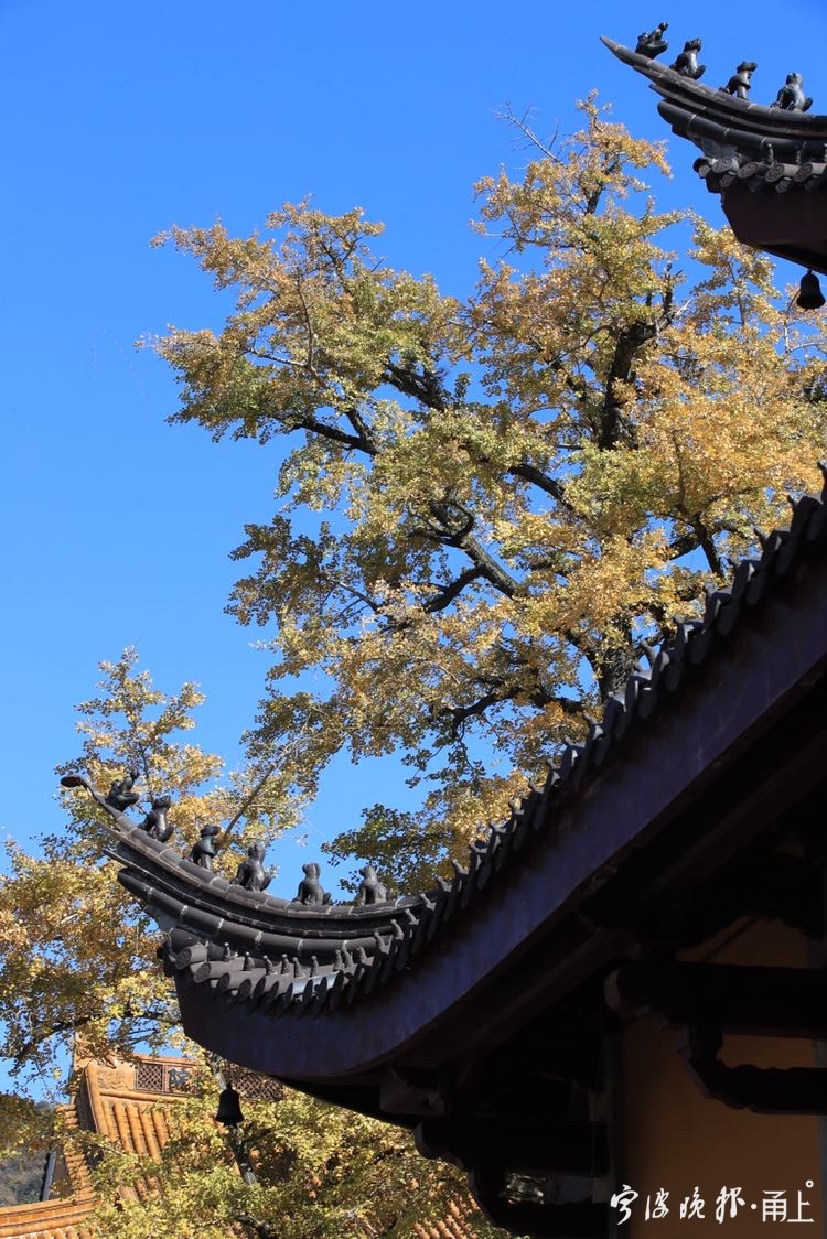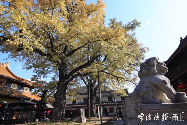 秋日阳光下,雪窦山已是层林尽染。雪窦寺里,两棵千年银杏树也逐渐迎来一年里最美的时节,吸引了众多游客前来拍照留念。