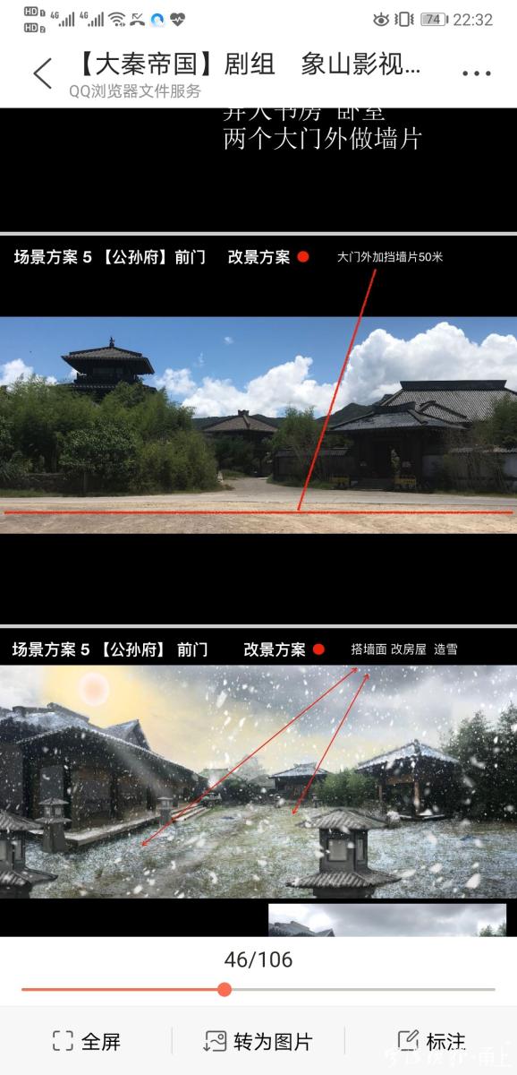 《大秦赋》曾转景象山影视城拍摄,就拿置景来说,《大秦赋》能精致到什么程度呢?剧组在象山影视城进行了实际场景改造,采用了大量的实景拍摄。仅设计概念图纸就达几十张,将影视城中的桃源行宫改造成了剧中的赵国大殿,周王宫则改成了楚国大殿,以及因地制宜把赵盾府、程婴府、庄姬府都一一改造成了剧中场景,还原度极高。置景细节颇为考究,图纸上甚至将哪几块区域需要增加绿植等小细节也一并标注,足见剧组对细节要求之严苛。