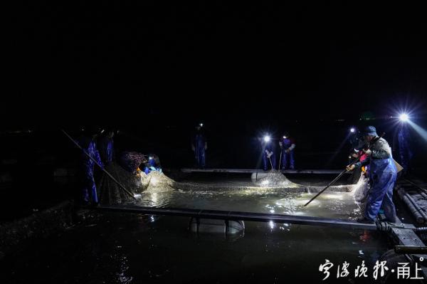 晚上6点多,严兴国和捕捞工人一起坐船前往养殖基地,虽然寒风瑟瑟,但是一想到能够大丰收,大家心里都暖暖的。拉网、捕捞、装箱、挑拣……不到一个小时,一个网箱约2000斤的大黄鱼就被捕捞上岸。严兴国说,订单多的时候,一直要忙到第二天凌晨。