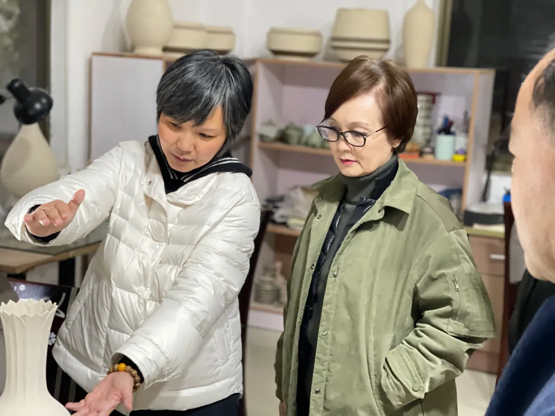 18日下午,浙江省文联党组书记陈瑶一行来到慈溪市上越陶艺研究所,走访施珍陶艺工作室。
