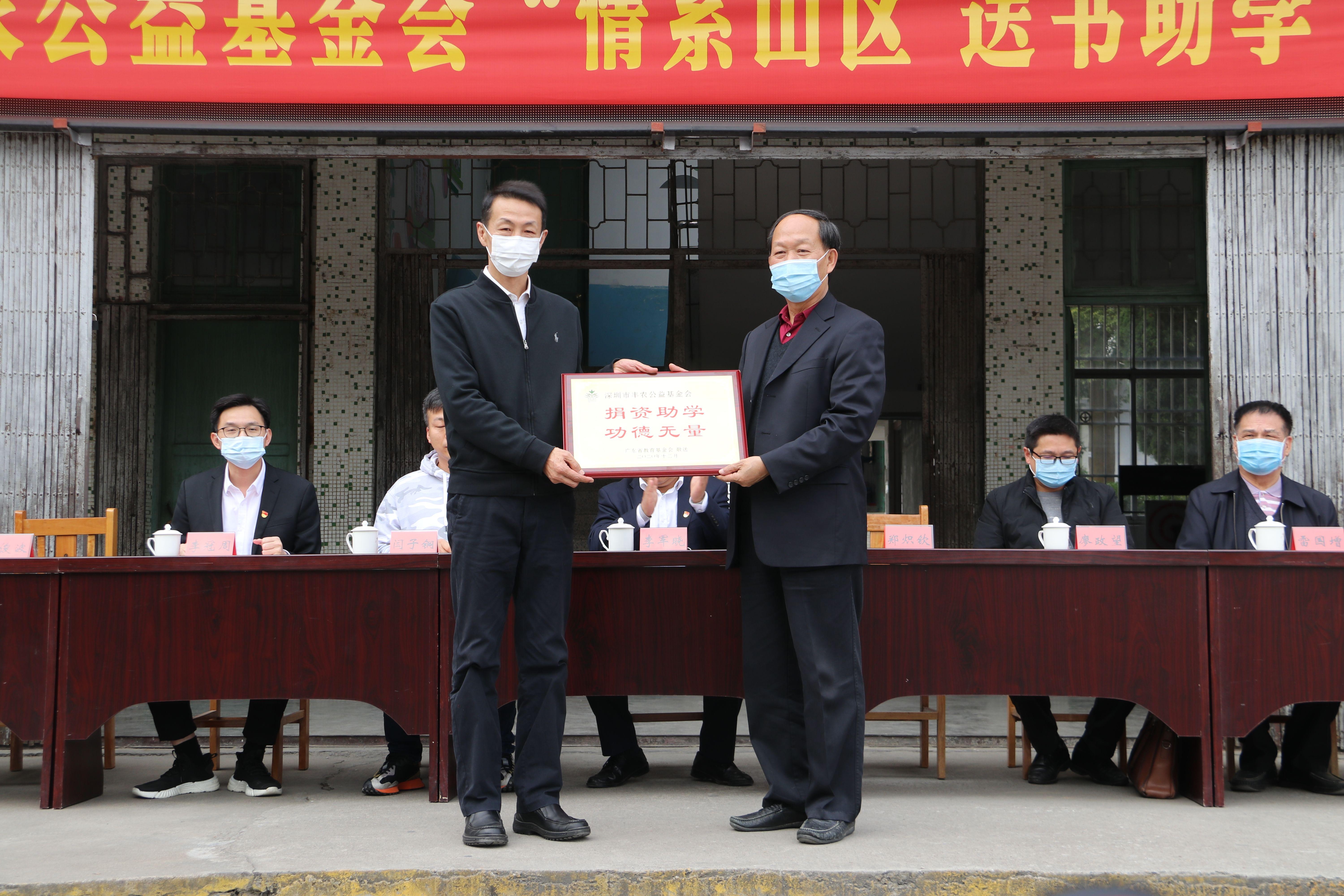 丰农控股副董事长孙俊波接收“捐资助学,功德无量”牌匾