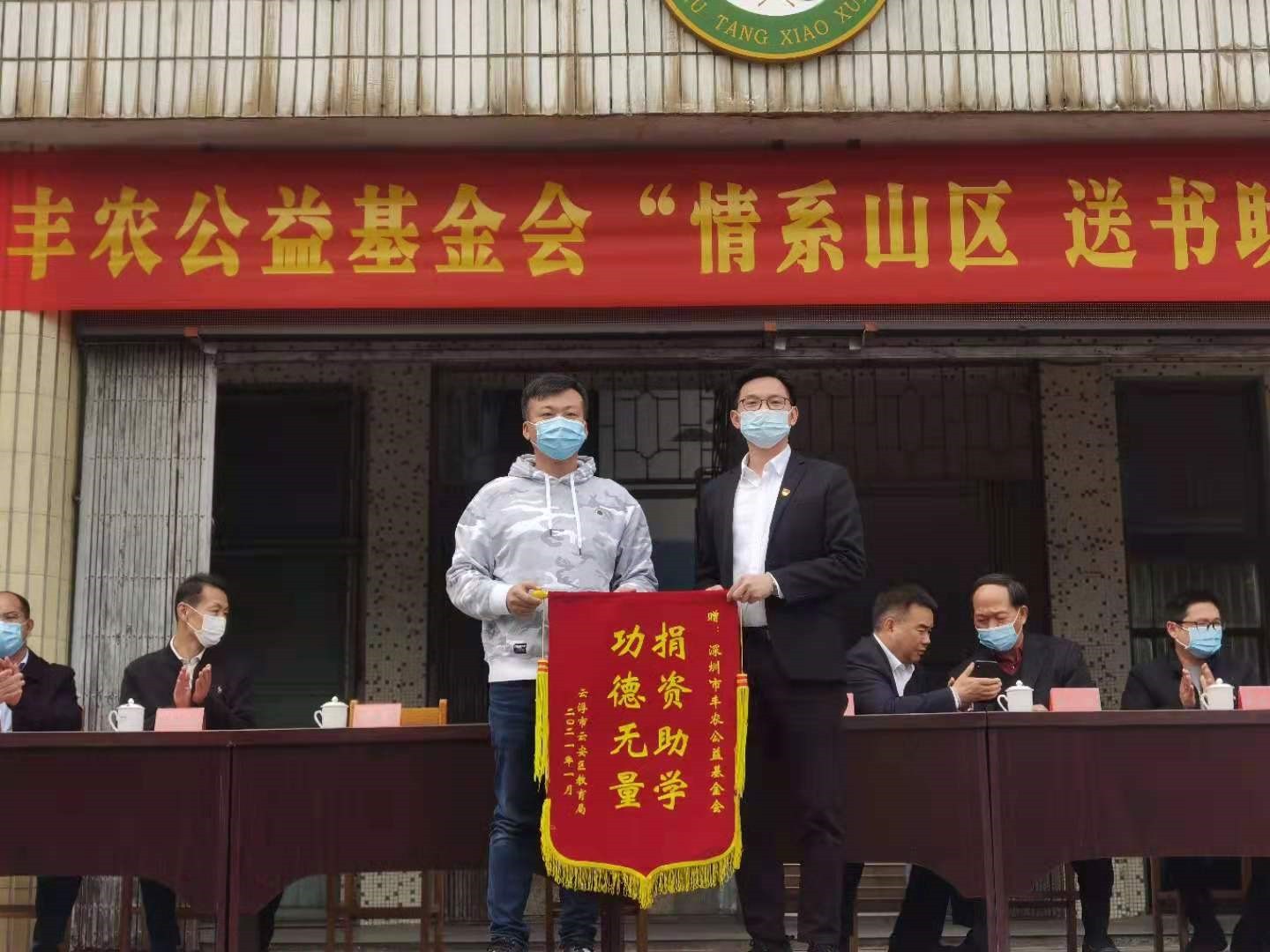 2021年1月6日,深圳市丰农公益基金会“情系山区,送书助学”捐赠仪式在广东省云浮市云安区六都镇谷塘小学举行。