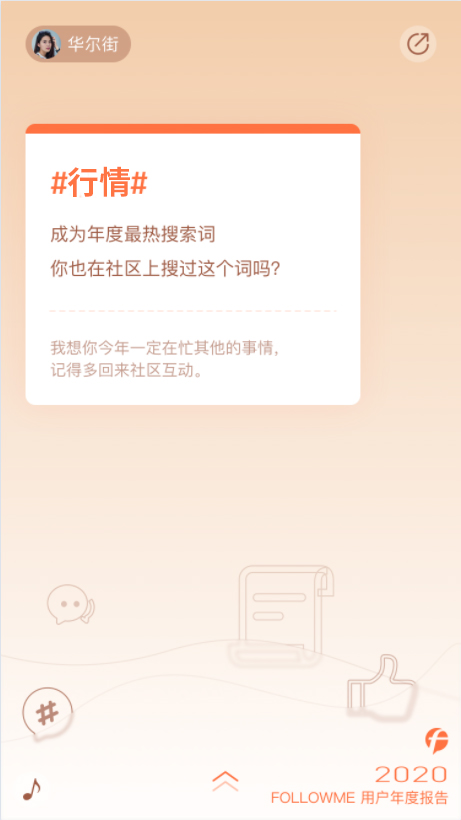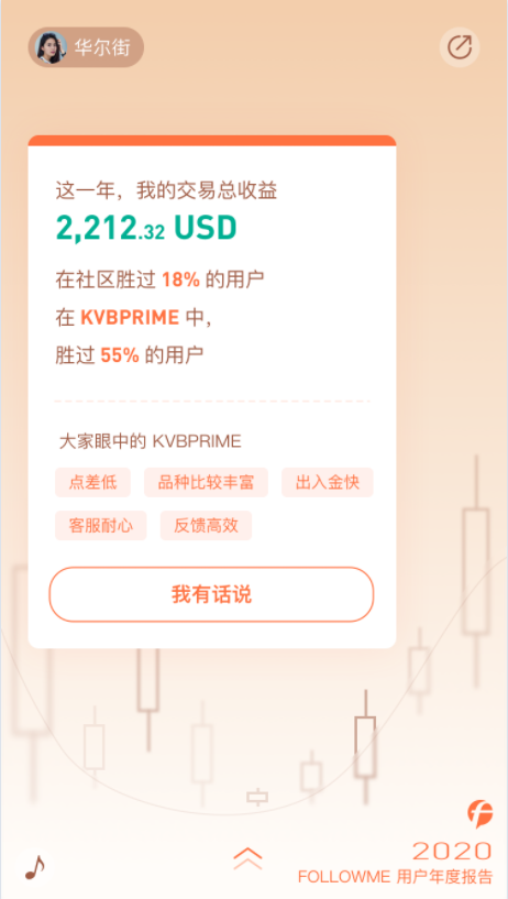 2020个人年度报告体现了用户对 FOLLOWME 交易社区的信赖与支持。作为一个致力于用户服务的交易社区,我们的目标是让每个用户感受到开放的交流环境,舒适便捷的交易服务。未来,FOLLOWME 交易社区也会不断提升产品质量,优化产品服务,给用户更加愉悦的使用体验。