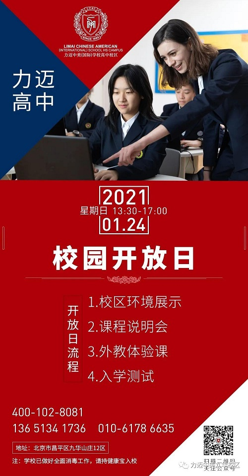 现在,力迈国际高中校区春季招生已经全面开启,如果您还有更多问题希望了解,欢迎您致电来访或者报名参加1月24日校园开放日活动,学校已经做好全面消毒工作,期待在美丽的校园与您相会!