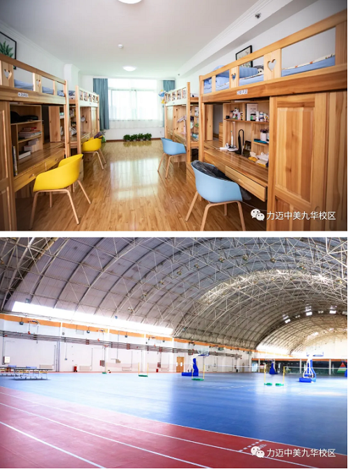 校区还拥有800平米智能图书馆及15000平防霾体育场馆,健身、篮球、足球、网球、排球、羽毛球、乒乓球、冰球、游泳项目一应俱全。所有室内区域均有新风系统及中央空调入户,28m²标准宿舍,独立卫浴,24小时热水系统,给学生创造了一个温暖舒适、安全有爱的学习和生活环境。