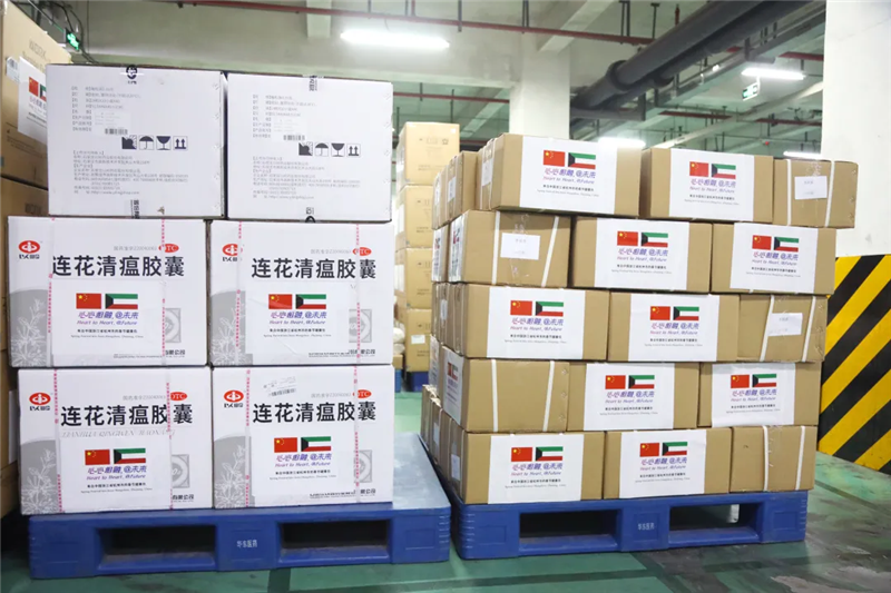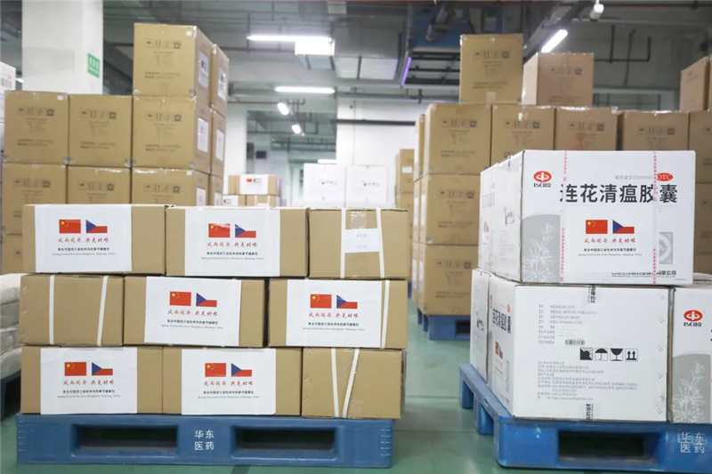 运往捷克的捐赠箱上书写着“风雨同舟、共克时艰”,传达了疫情面前持续携手共度难关的情义与信心。
