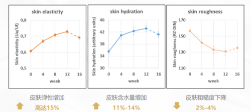胶原蛋白进入皮肤后,可以修复断裂老化的弹力纤维网,填充在皮肤真皮之间,填补皮肤凹陷,改善松弛,增加皮肤紧密度,视觉上毛孔也能变小,更加饱满充盈。此外,它还能清除体内老化的自由基,多途径抗氧化,实现抗衰抗老。