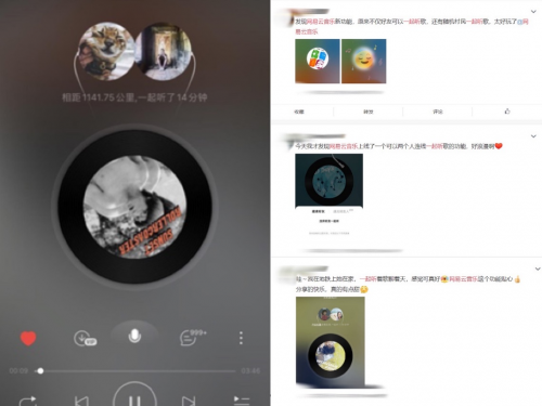 互动之外,平台还能够为年轻用户提供情感连接。2020年网易云音乐推出“一起听”功能,用户可通过播放页面中“一起听”的功能按钮,邀请好友一起聆听当前播放的歌曲,也可以和其他用户“一起听”。该功能上线后全面收获用户好评:“这有点像学生时代‘我的耳机分你一半’那种感觉,这是即时性给人带来的陪伴感,一种很多人生活中缺失很久的、分享的快乐。”