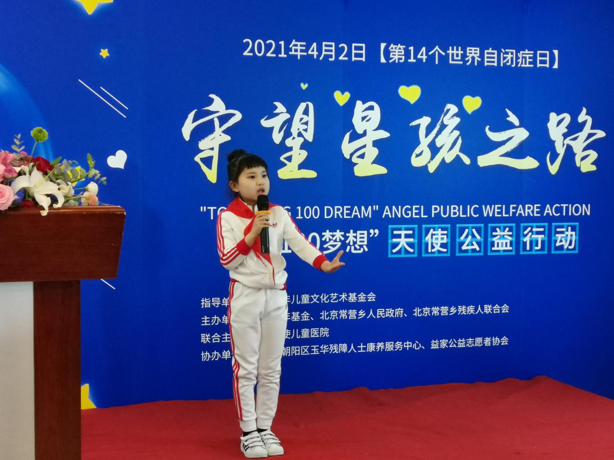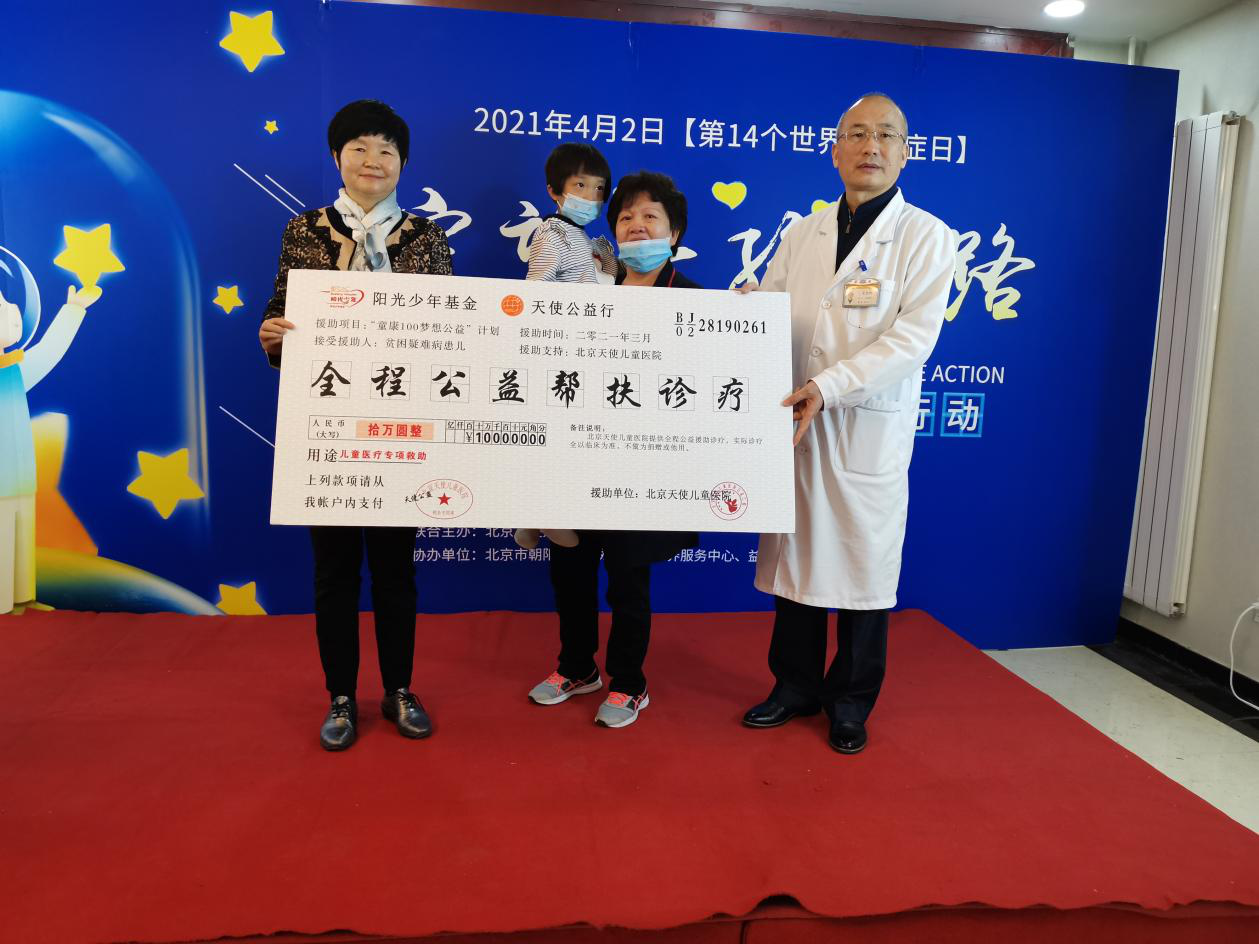 为提高人们对自闭症的意识,争取早期治疗改善患者的状况,在4月2日自闭症日来临之际,北京天使儿童医院联合阳光少年基金会举办“童康100梦想”守望星孩之路公益行动,让“星星的孩子”能够得到更多的帮助,从而能够融入到社会。