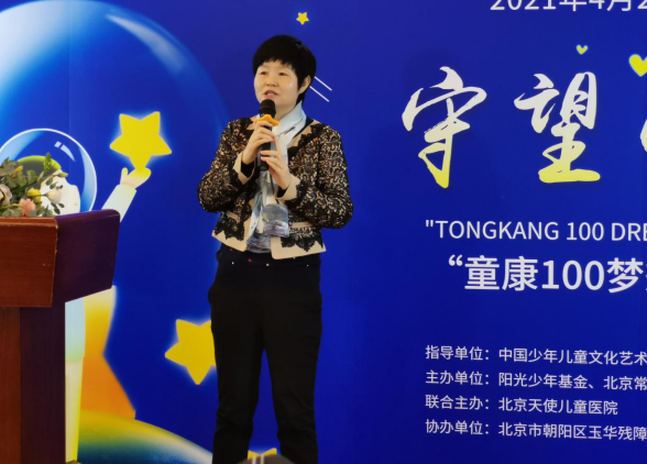 首先姚莉发表了开幕词,她说道:“在我国有164万个自闭症患者, 儿童自闭症占我国精神残疾首位,也已成为严重的全球性公共卫生问题。阳光少年基金在北京天使儿童医院的大力支持下,举办“童康100梦想”公益行动,目的是倡导全社会以平等、尊重、关爱的原则去关注和接纳自闭症儿童;倡导用科学的理念与方法去引导自闭症儿童;倡导建设更加包容、和谐的社会环境,重视环境改变与观念变革对自闭症儿童融入主流社会生活的作用”。