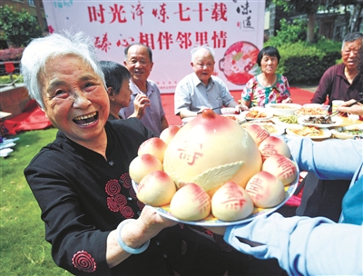 重阳佳节,敬老志愿者把制作精美的桃形糕点赠送给社区里70岁以上的老年人,祝老人健康长寿。(资料图片丁安摄)