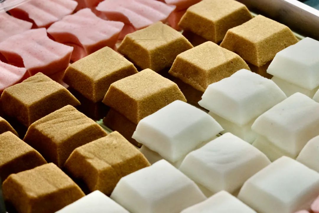 菜场南边的一家奉化人夫妇开的糕团店里,黑饭糕、状元糕、金团、米馒头、灰汁团 ,常见的点心备货非常齐全 。