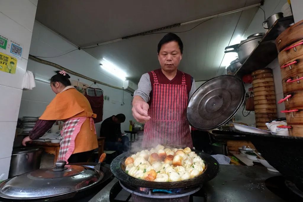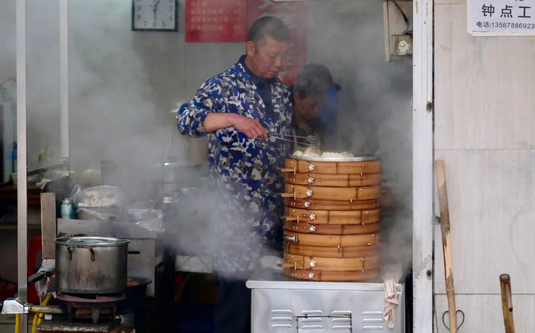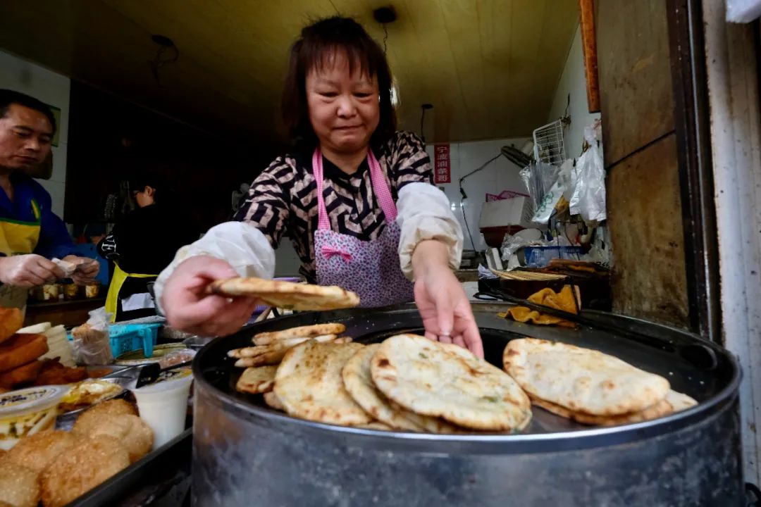这些早餐店,门面小小的,卖的都是些家常点心,可生意总做得热热闹闹。他们每天凌晨三四点钟就要开始忙碌,是城市里最早醒来的一批人。热乎的包子、油条温暖宁波人的胃,唤醒城市的早晨。