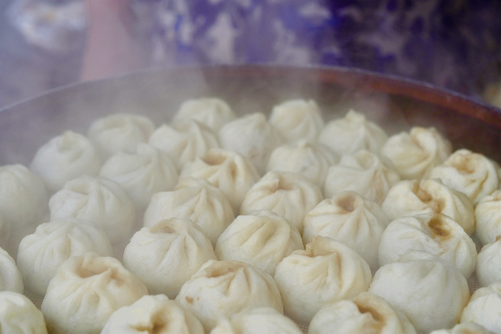 油条店另一边的一家早餐店,号称宁波双笼包王。店里一早就热气腾腾。
