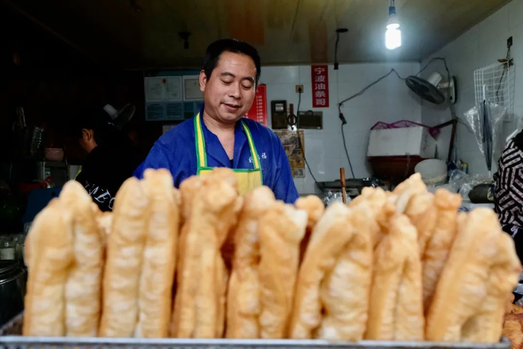 被吃货们昵称为“宁波油条哥”的大哥来自仙居,夫妇两人在宁波卖了20多年的早餐,油条炸得松松的,香味破屏飘来,特别馋人。