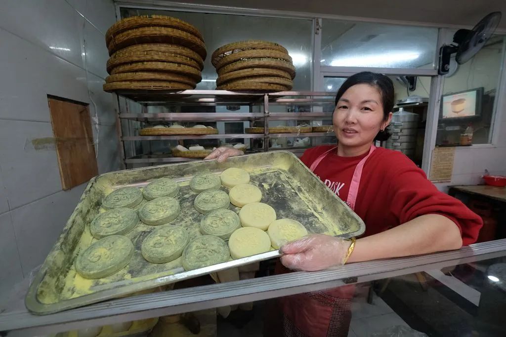 他们每天凌晨三四点钟就开始忙碌,“宁波人不喜欢吃隔夜货,这么多种点心轮着做下来,早上卖的都是新鲜货。”