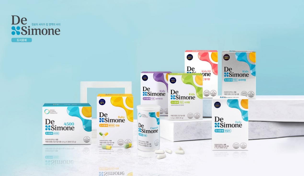 DeSimone益生菌从2009年上市至今,一直引领着韩国高含量益生菌市场的发展。根据不同人群的肠道特点,DeSimone有着儿童和成人的日常和高端产品线,利用八种专利菌种的科学配比,研发出适合不同人群的专业益生菌产品。