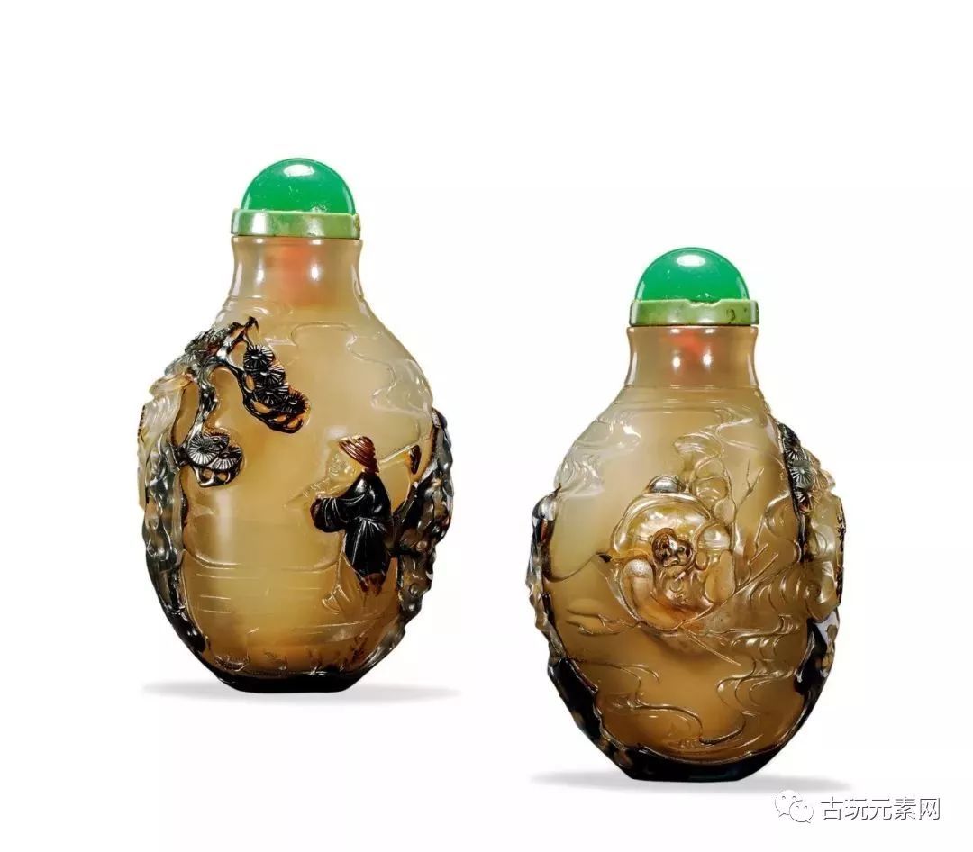 2384 清乾隆 玛瑙苏作雕采芝图鼻烟壶