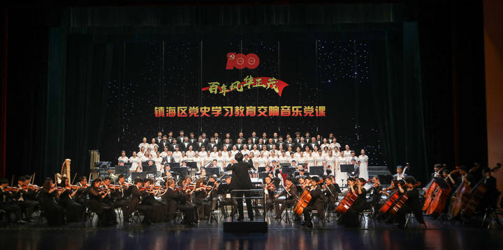 时而铿锵激昂,是《红旗颂》带着大家,走进了那个激情昂扬的年代;时而婉转,是《唱支山歌给党听》,诉说着对党的绵绵感恩之情;《十七房的月亮》缓缓而来,十七房一直没变,变的是人民的新生活……5月18日晚,在“百年风华正茂”镇海区党史学习教育交响音乐党课上,交响乐与诗歌的“齐鸣”,以动人的音符,带着观众穿过百年风雨历史,接受思想洗礼。