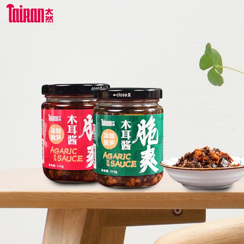 在口味上,这款大山合太然木耳酱有原味和香辣味两种口味可以选择,满足人们不同的喜好。原味,鲜香不辣;香辣味,香气扑鼻、辣味适中。因为特别添加了脆笋,口感脆爽,下饭又开胃。