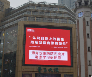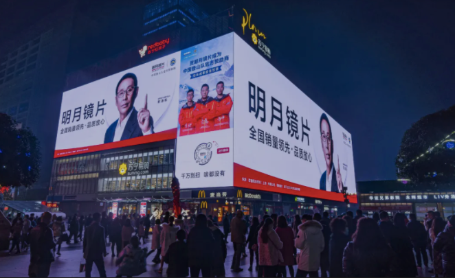 春节期间,明月镜片登陆网红地标——3788m²被称为“亚洲之光”的亚洲第一巨屏,此块屏幕可以发布裸眼3D视频内容。