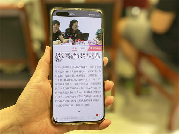 但与过往不同的是,当晚“代表夜聊”除了来到现场的居民代表,还有近千名居民通过网络平台,远程关注着这场线上同步直播的夜聊活动。