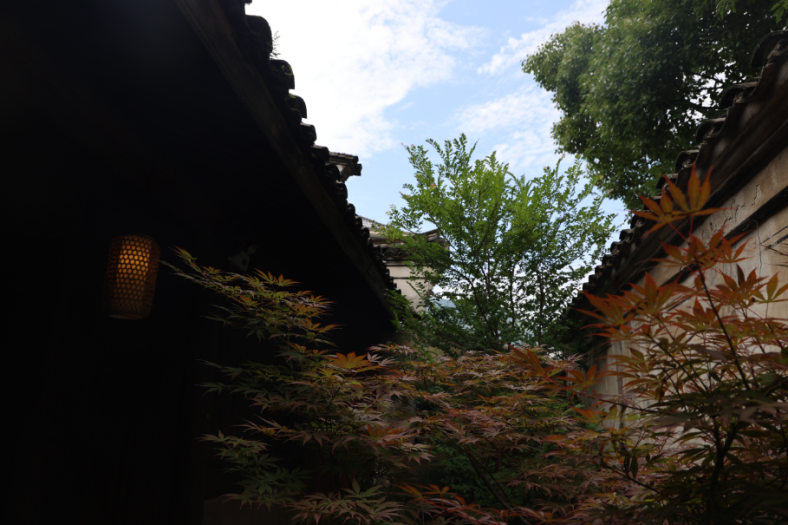 师生一行首先来到浙江省银宿品牌民宿—圃舍溪里方,在这里,外籍师生们换上了中国传统服饰——汉服。面对着这些陌生的传统服饰,他们摸索着互相帮忙换上了衣服。