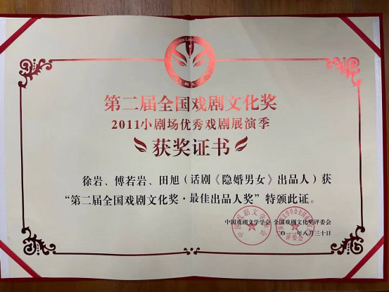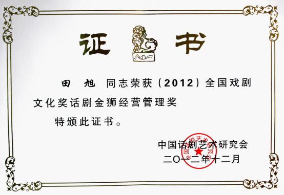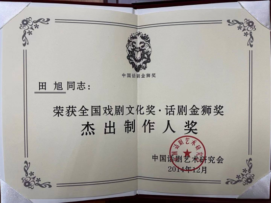 这是田旭继第八届话剧金狮奖经营管理奖后,又一次摘得“金狮”。至此,田旭已囊括国家级戏剧出品、管理、制作三个领域内份量最重的三项大奖——第二届全国戏剧文化奖 最佳出品人奖、第八届中国话剧金狮奖 经营管理奖、第九届中国话剧金狮奖 杰出制作人奖。
