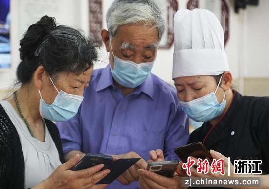 “叔叔,您以后可以用新三宝微信小程序点餐了……”6月17日,浙江省宁波市镇海区招宝山街道新三宝服务社工作人员陈丽庆在长者食堂,手把手地教89岁就餐居民赵延林使用“云享车轮食堂”智慧系统进行订餐。