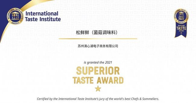 2021年1月,国际美食评鉴机构iTi(国际风味评鉴所)正式揭晓2021年度国际美味奖章获奖名单。在本次参选的全球2200款产品中,来自中国的产品约有400款,其中48款产品获得奖项“一星美味奖章”。清心湖松鲜鲜松茸调味料荣获“一星美味奖章”。