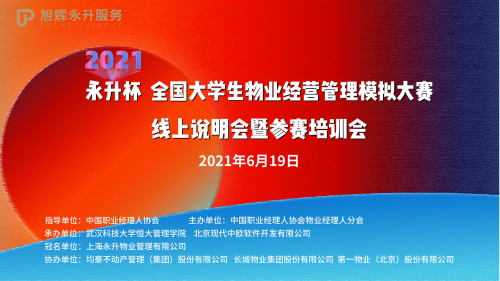 本次线上说明会暨参赛培训会的成功召开,正式启动了本次大赛,也预示着校内选拔赛正式开赛。预祝2021年“永升杯”全国大学生物业经营管理模拟大赛取得圆满成功!
