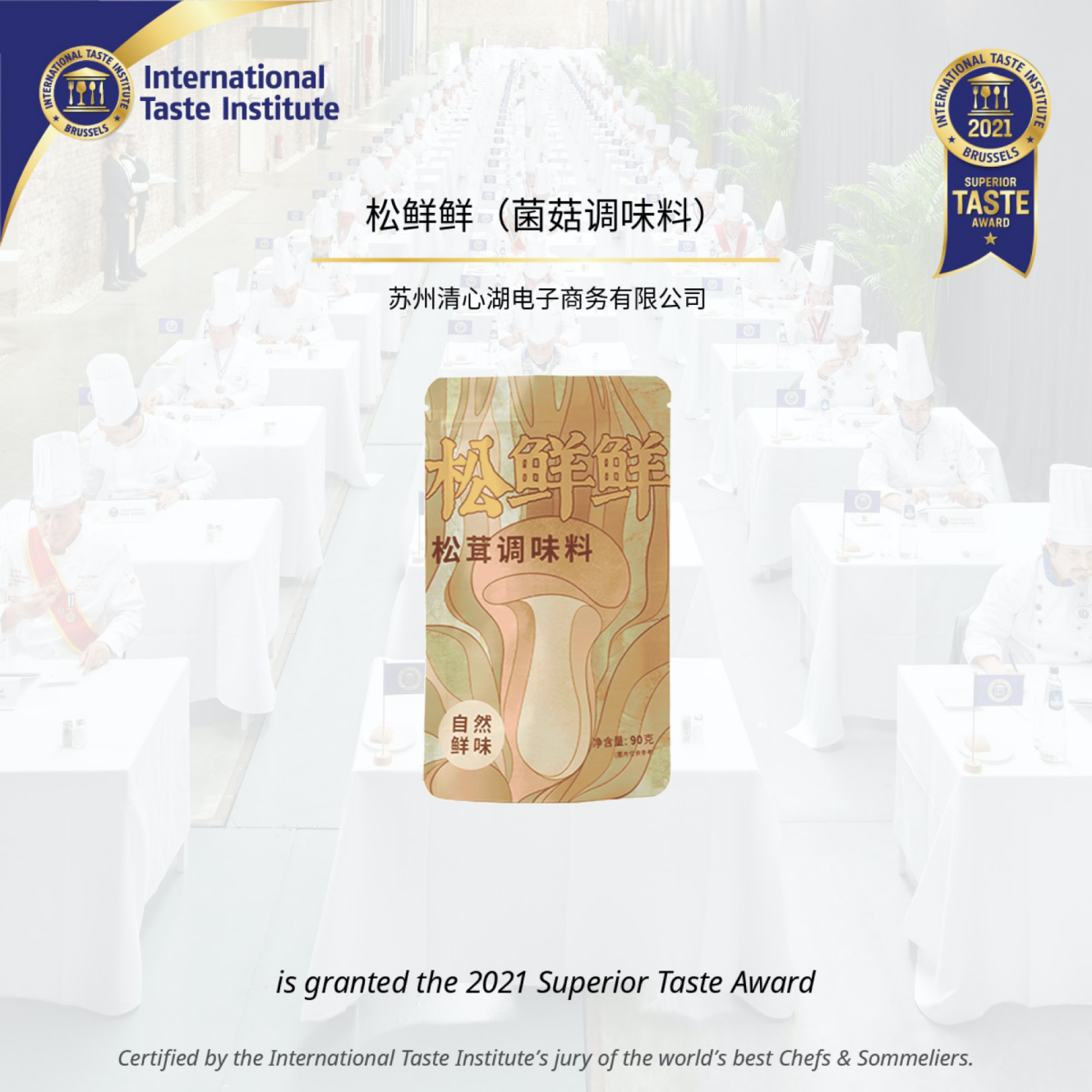 2020年9月,松鲜鲜松茸调味料被作为清心湖的主打产品;11月,松鲜鲜——清心湖子品牌,接棒清心湖品牌,成为所有以松茸为提鲜原料的调味品品牌名。据了解,松鲜鲜松茸调味料在国际上也屡获殊荣,2021年1月,国际风味评鉴所在比利时布鲁塞尔发布的顶级美味奖章(Superior Taste Award)名单中,松鲜鲜松茸调味料赫然在列。