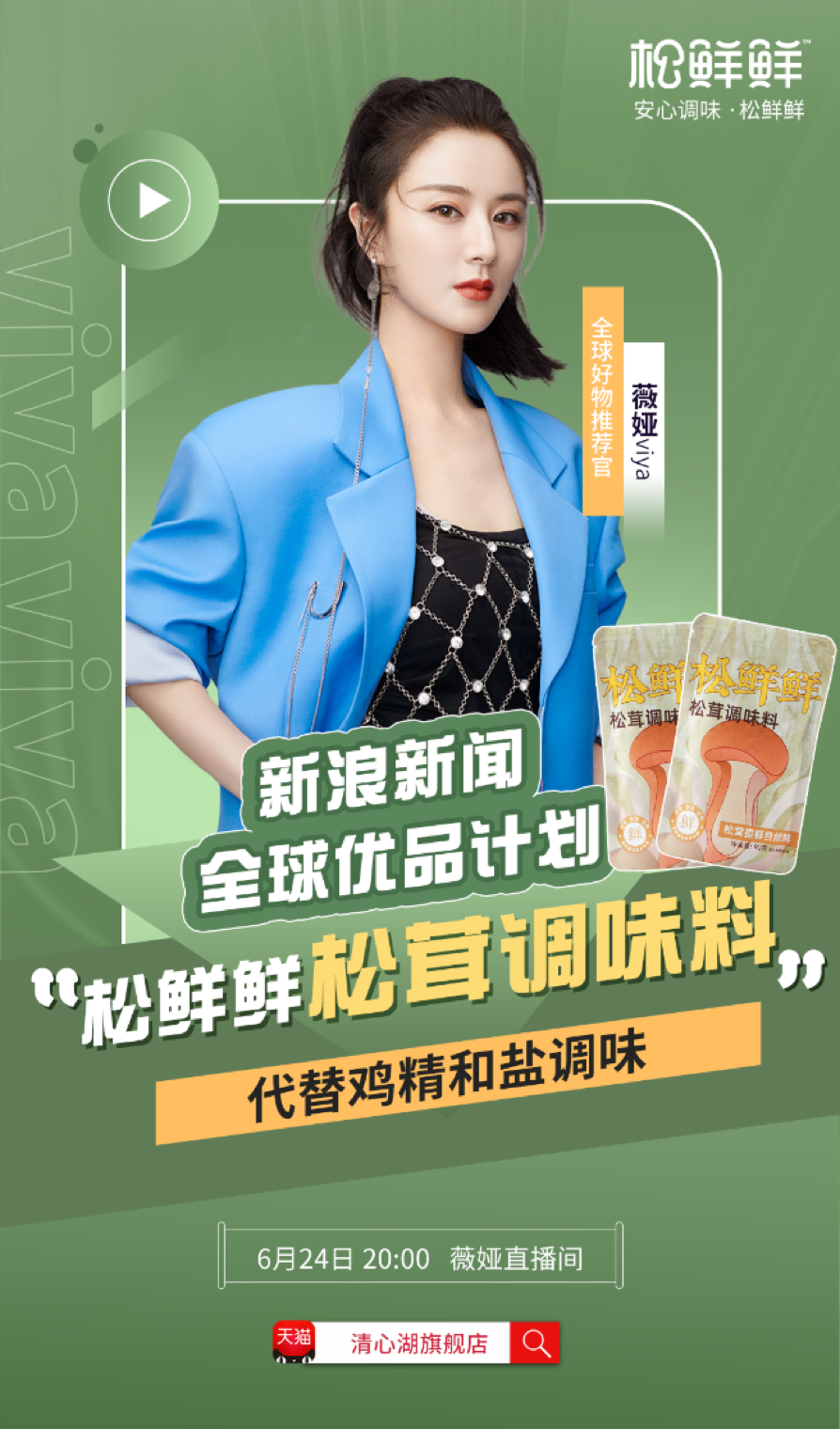 据了解,此次登上薇娅直播间的所有产品均为新精品国货,松鲜鲜松茸调味料是其中健康调味新国货的代表,直播仅三分钟,就爆卖60万+。