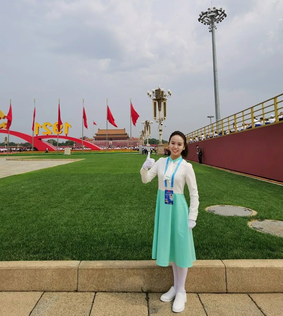 此外,宁波外事学校多名毕业生也参与到了当天相关表演中。在庆祝大会的暖场序曲中,宁波外事学校16级音乐专业毕业生陈思姚,担任了国家博物馆旁边观众席的合唱分指挥。