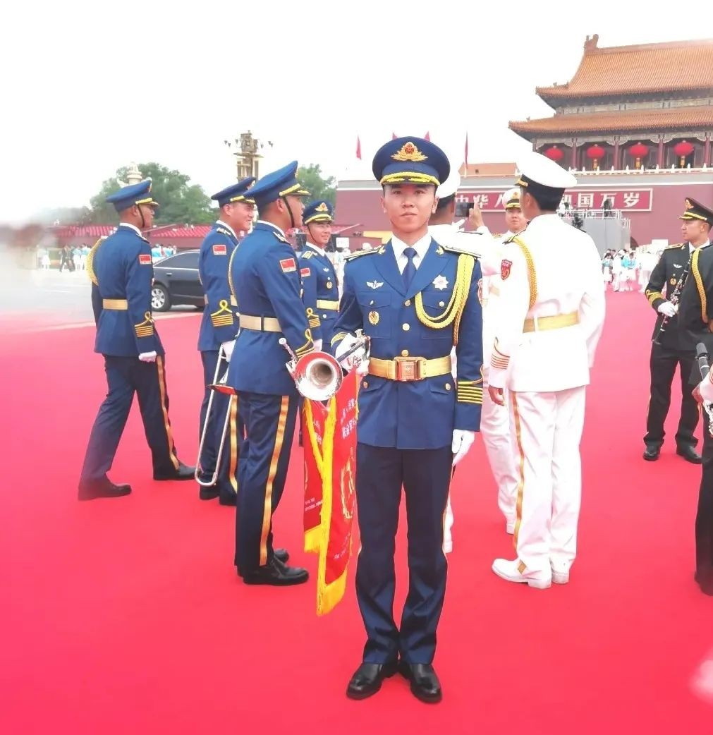在此次大会上,他与战友们一起奏响中华人民共和国国歌等十二首乐曲。庄严的乐曲在天安门上空回旋激荡,表达了中国军人对党的热爱。