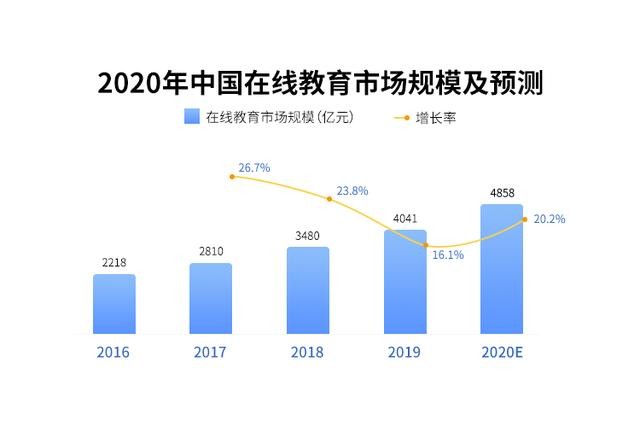 根据艾媒咨询调查数据显示,2020年中国在线教育用户规模将达到3765万人,2020年中国在线教育市场规模将达4858亿元。
