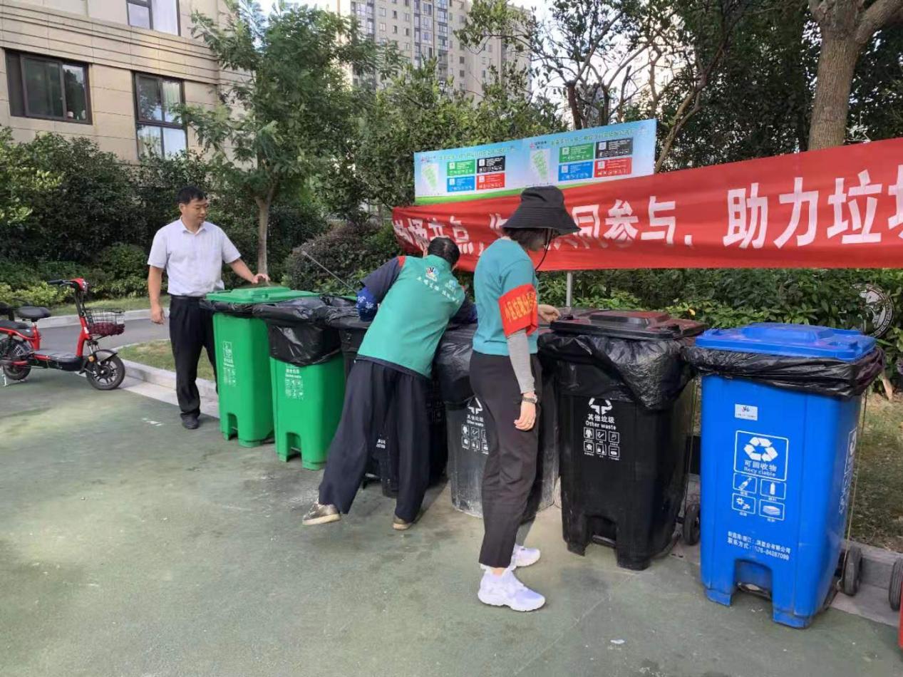 除了巡检队的“硬处理”,小区的党员也做起了垃圾分类宣传志愿者,和社工一起,运用“笨办法”,频繁地上门宣传、楼道巡查,劝导居民定时定点投放垃圾,同时物业公司在小区电梯内、单元门出入口张贴了垃圾分类宣传资料和投放时间提示,告知业主按时按点分类垃圾进行投放。渐渐的,这个有400多户居民却只有2个垃圾定时定点投放处的小区,实现了垃圾包不落地。