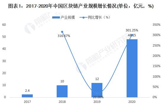 根据赛迪区块链研究院调研统计,随着2018年、2019年资本大量投入,我国区块链产业已具有一定的规模。2020年,虽然受全球新冠疫情爆发的影响,但我国区块链产业呈稳定增长态势,到2020全年产业规模达48.15亿元,较2019年大幅上升。